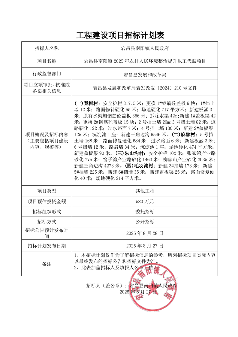 宕昌縣南陽(yáng)鎮(zhèn)2025年農(nóng)村人居環(huán)境整治提升以工代賑項(xiàng)目
