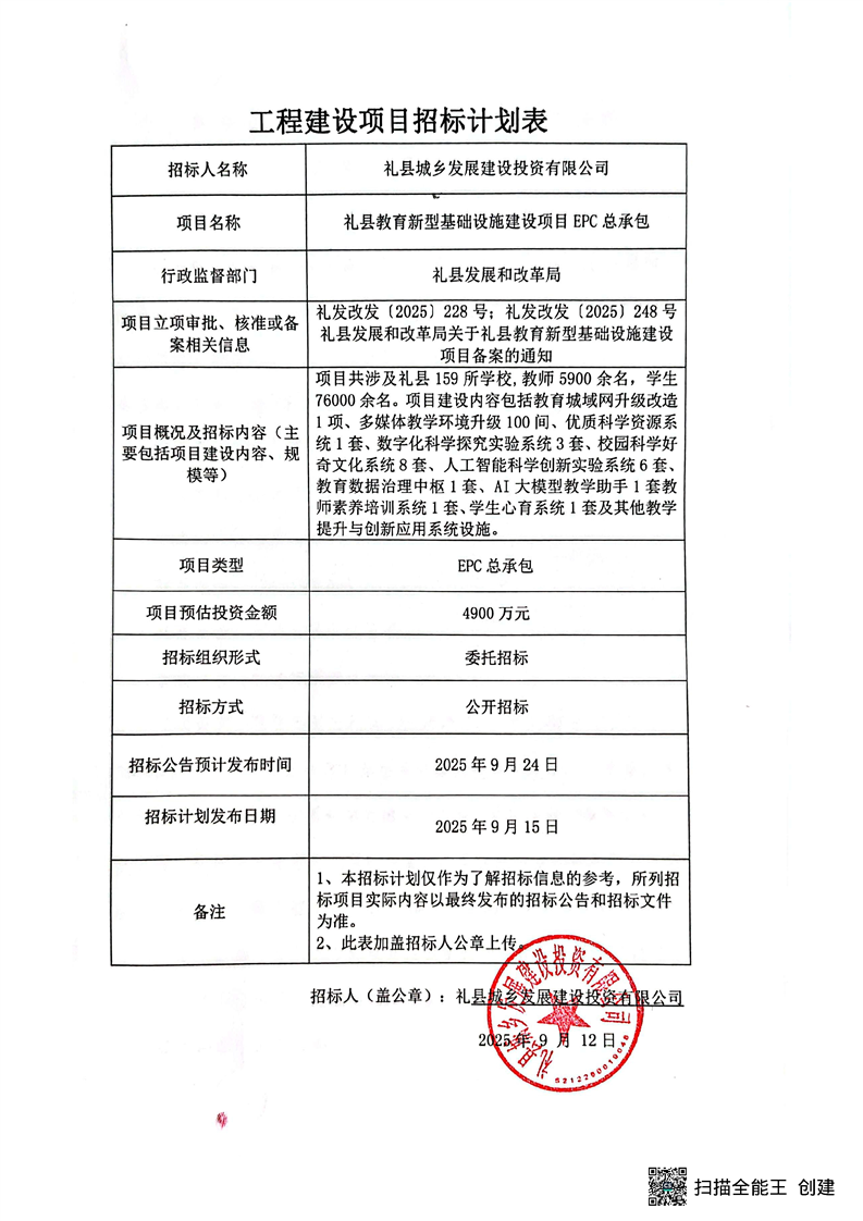 禮縣教育新型基礎(chǔ)設(shè)施建設(shè)項(xiàng)目EPC總承包