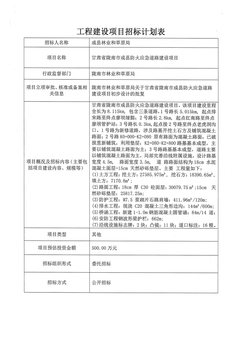 甘肅省隴南市成縣防火應急道路建設(shè)項目