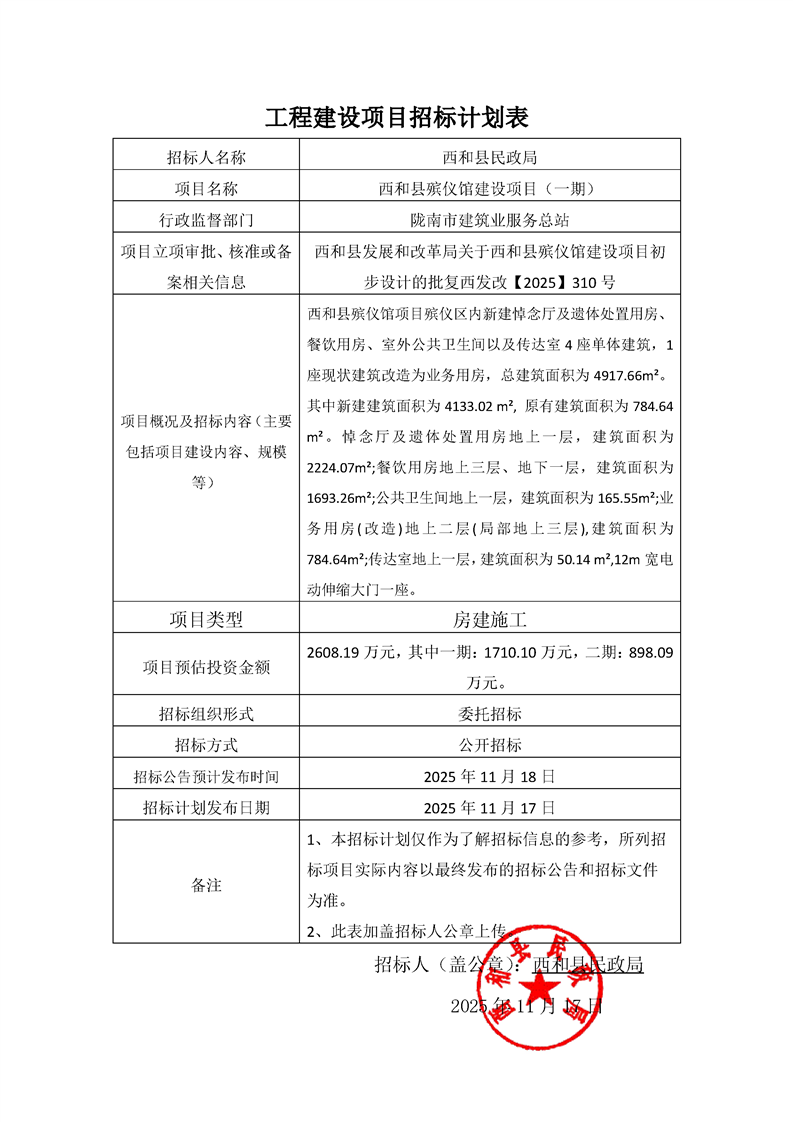 西和縣民政局工程建設項目招標計劃表.pdf