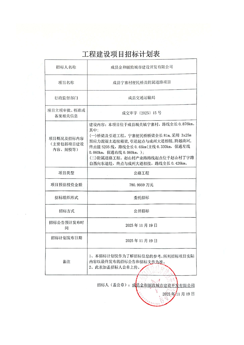 成縣寧寨村便民橋及附屬道路項(xiàng)目