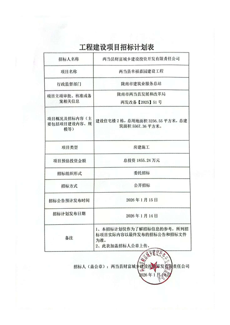 兩當縣幸福嘉園建設工程