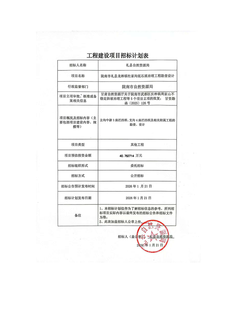 隴南市禮縣龍林鎮(zhèn)杜家溝泥石流治理工程勘查設計