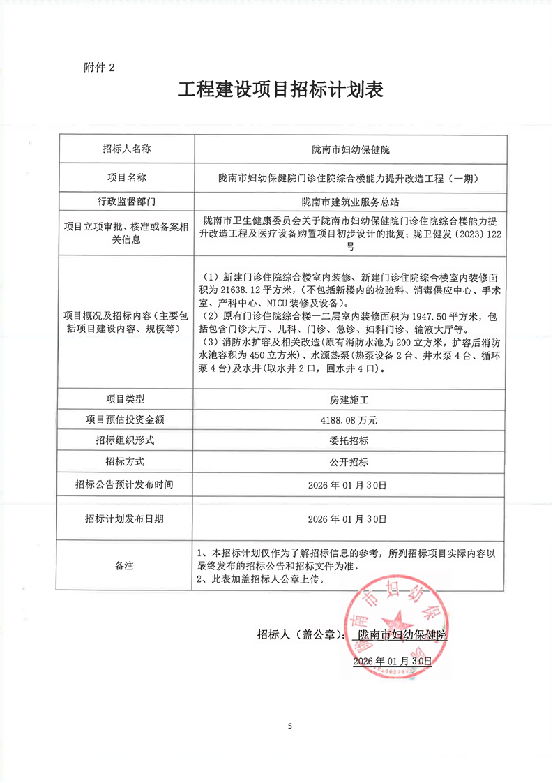 隴南市婦幼保健院門(mén)診住院綜合樓能力提升改造工程(一期)