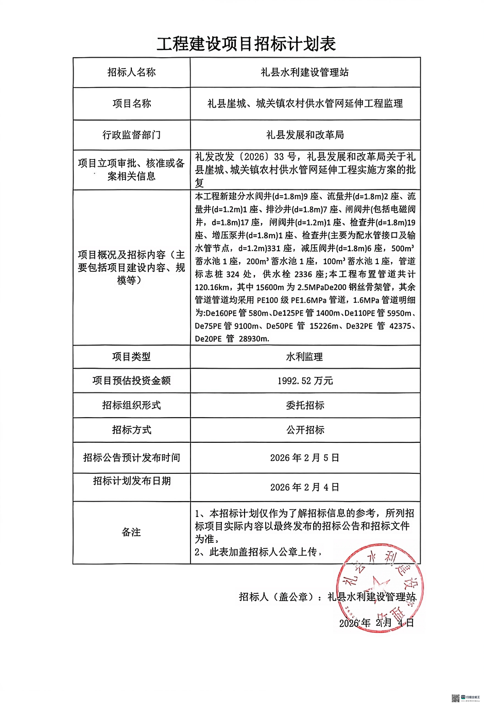 禮縣崖城、城關(guān)鎮(zhèn)農(nóng)村供水管網(wǎng)延伸工程監(jiān)理