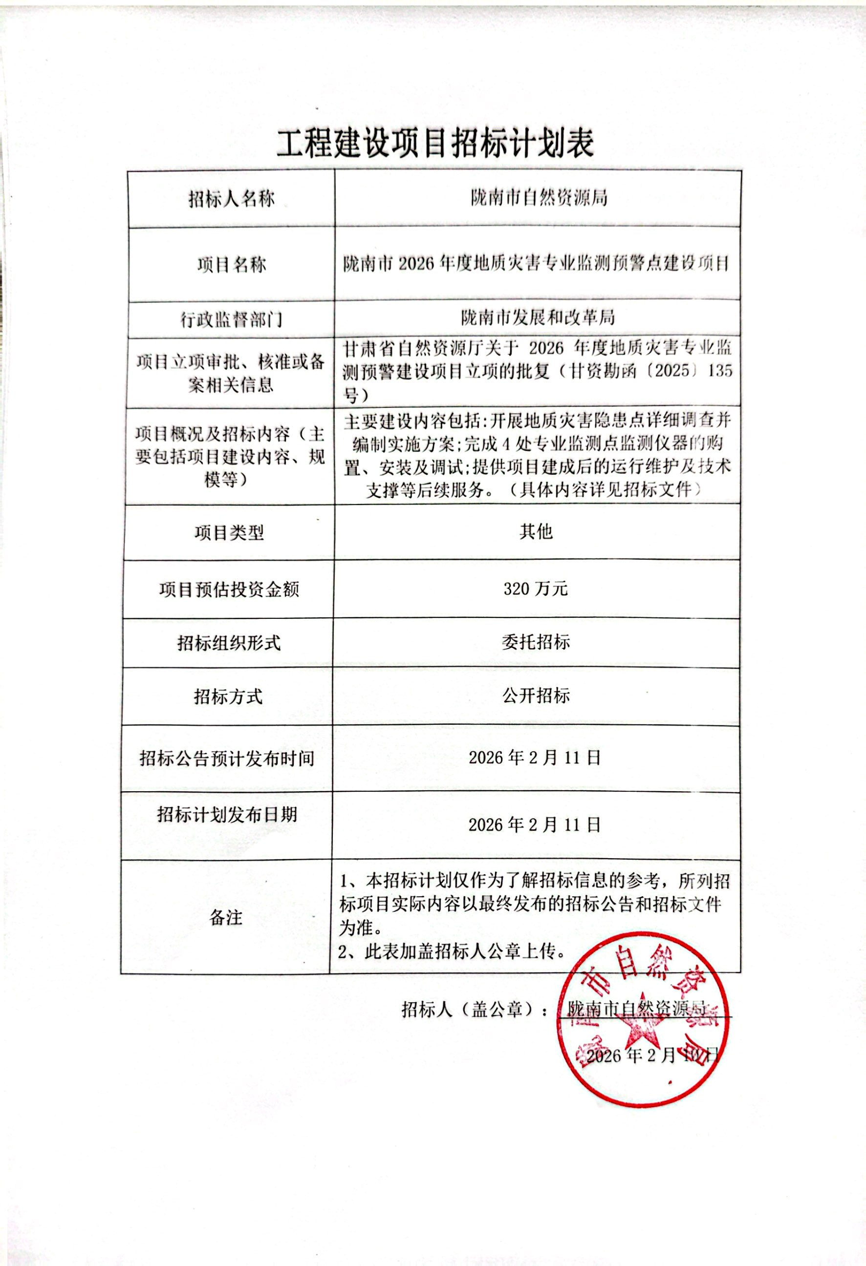 隴南市2026年度地質(zhì)災(zāi)害專業(yè)監(jiān)測預(yù)警點(diǎn)建設(shè)項(xiàng)目