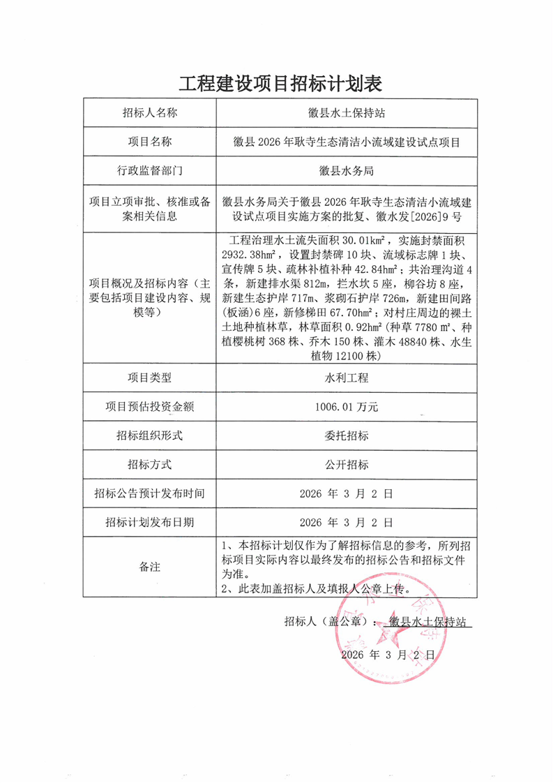 徽縣2026年耿寺生態(tài)清潔小流域建設(shè)試點(diǎn)項(xiàng)目