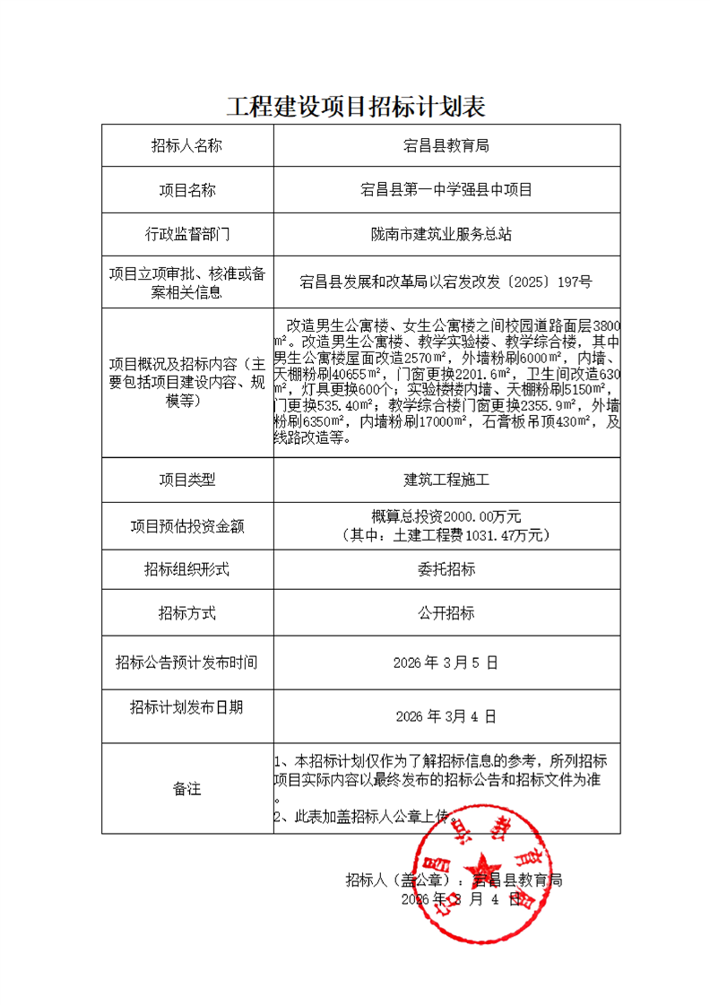 宕昌縣第一中學(xué)強(qiáng)縣中項(xiàng)目