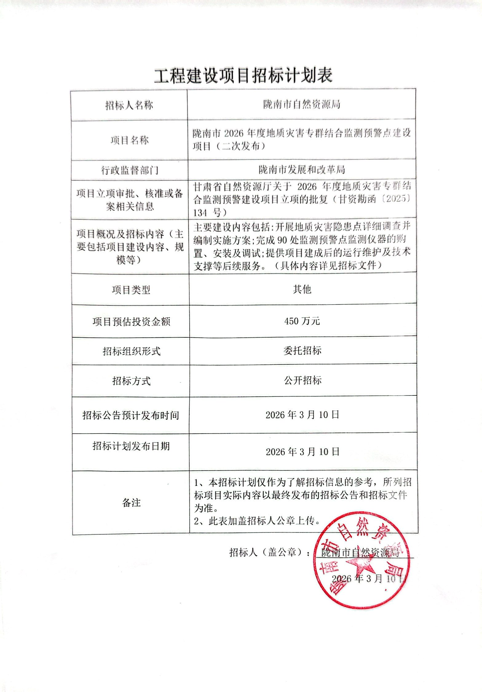 隴南市2026年度地質(zhì)災(zāi)害專群結(jié)合監(jiān)測預(yù)警點建設(shè)項目(二次發(fā)布)